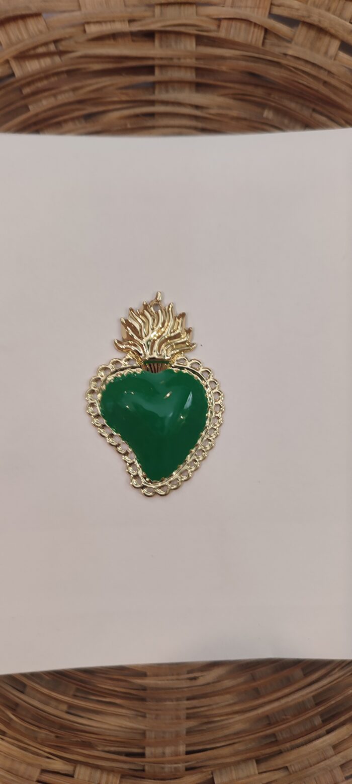 Cuore in metallo verde e dorato 4 cm