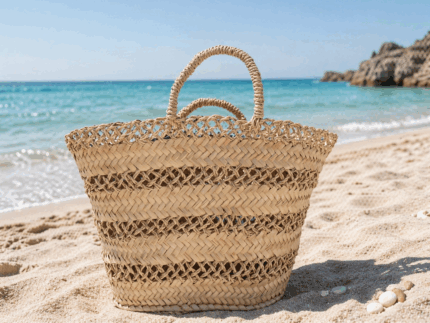 Borsa mare in paglia intrecciata traforata